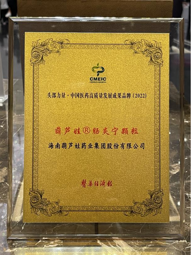 在本次发布会上,公司重点产品壹号娱乐牌肠炎宁颗粒同时荣膺“头部力量·中国医药高质量发展成果品牌(2022)”。壹号娱乐牌肠炎宁颗粒(2g),传承经典名方,临床广泛用于成人及儿童急慢性胃肠炎、腹泻等疾病的治疗,由于其杰出的临床价值,被纳入国家中医药管理局相关专家项目组制定的《中成药治疗小儿腹泻病临床应用指南》。