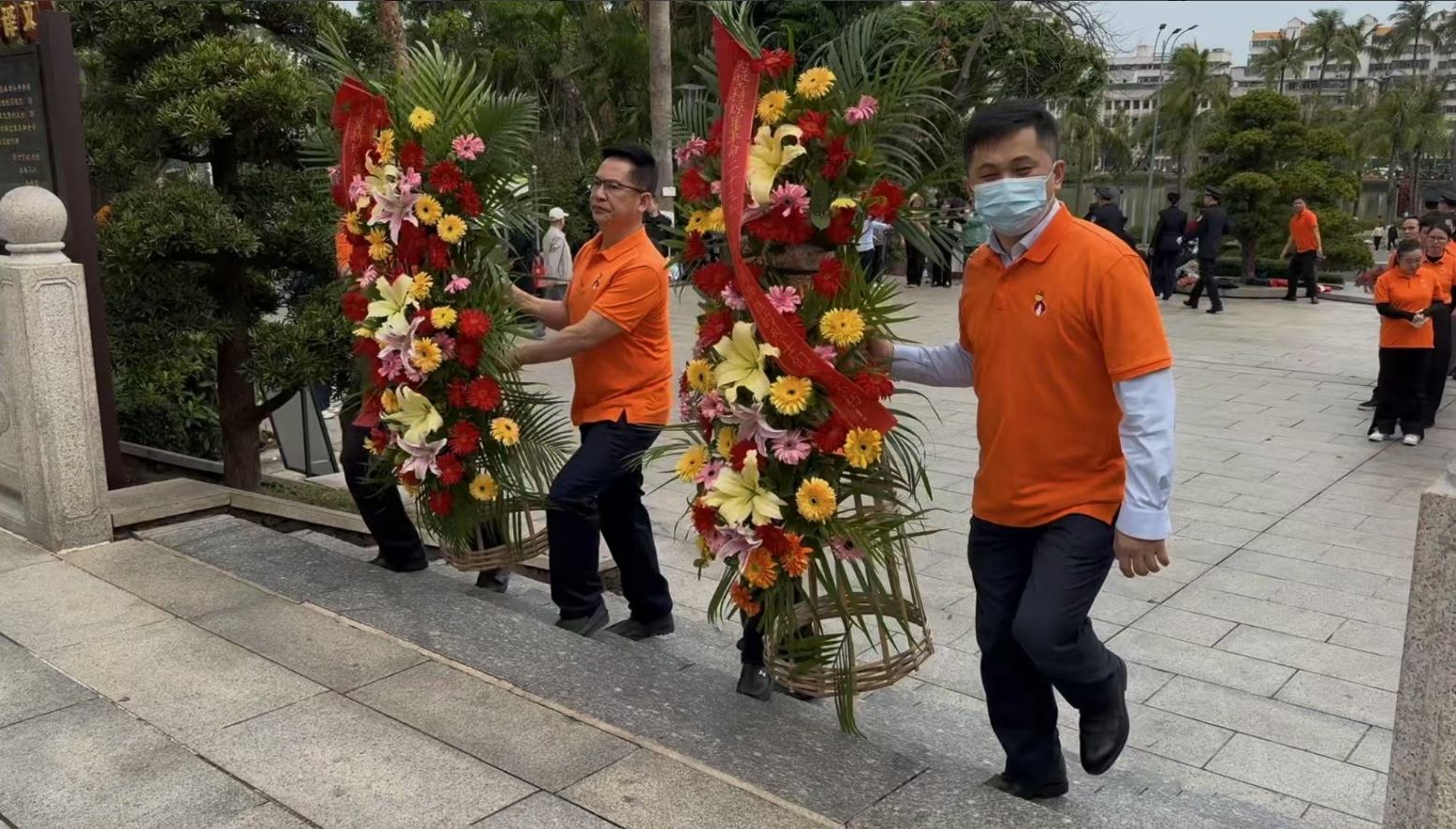 经过一段时间的等待才轮到壹号娱乐。壹号娱乐首先向烈士敬献花篮,花篮缎带上写着“为坚持琼崖革命23年红旗不倒牺牲的烈士们永垂不朽!”“为解放海南岛渡海牺牲的烈士们永垂不朽!”鲜艳的花篮寄托壹号娱乐对革命先辈的崇敬和哀思。